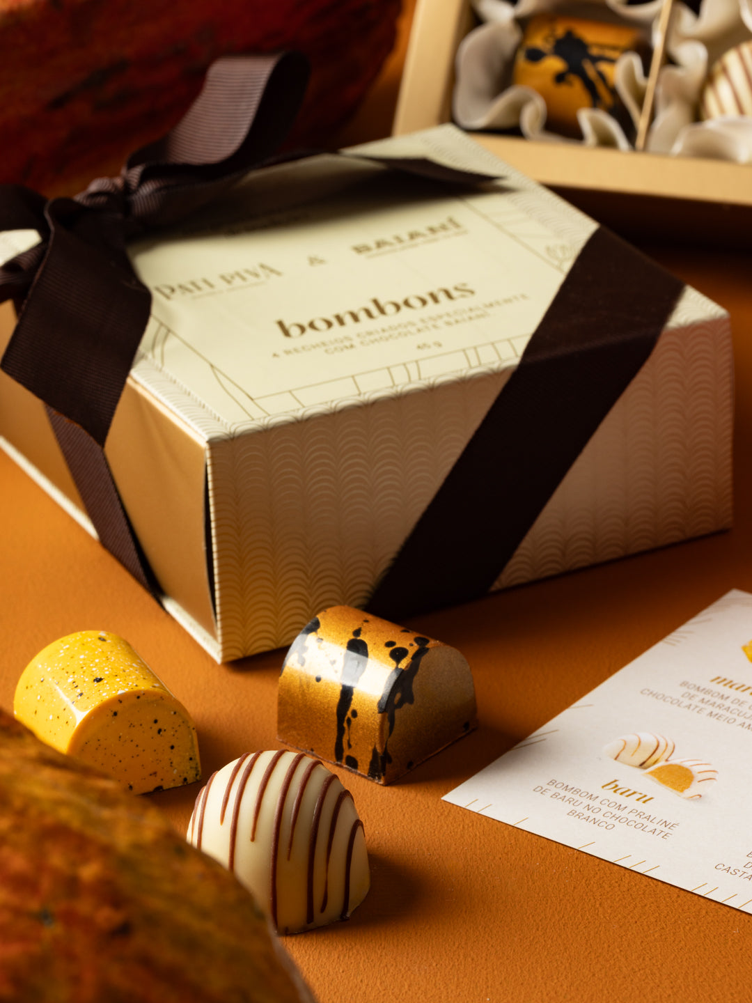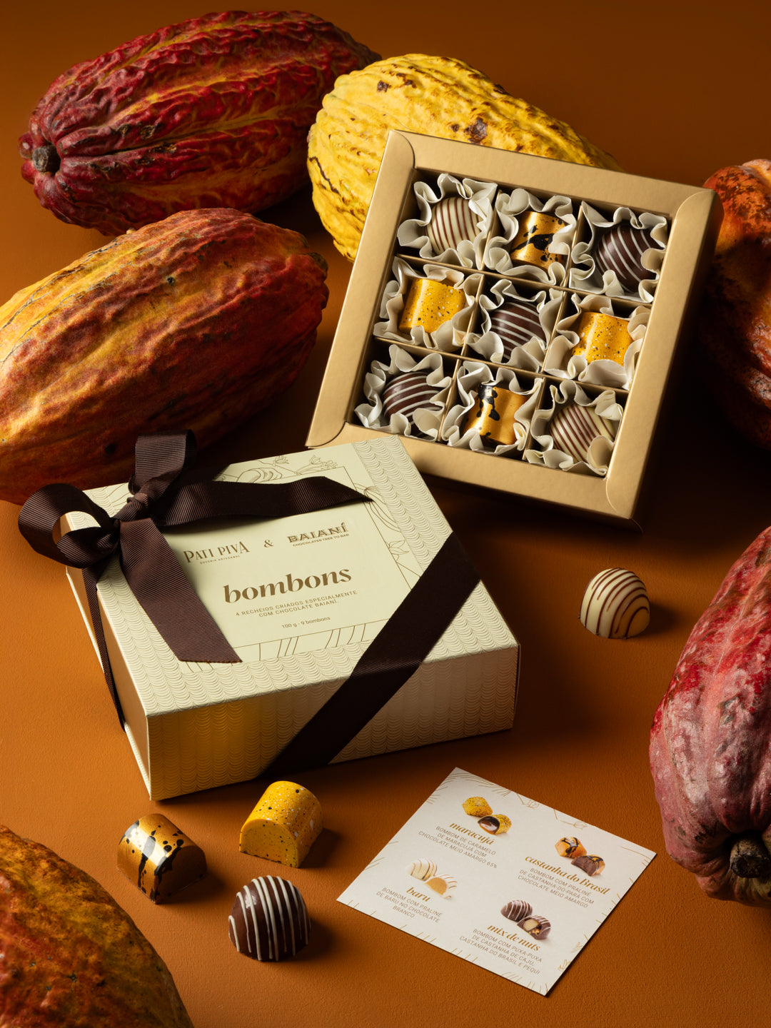 Pati Piva e Baianí se juntam para criar uma coleção de bombons que celebra o melhor do cacau nacional com a delicadeza da confeitaria artesanal.