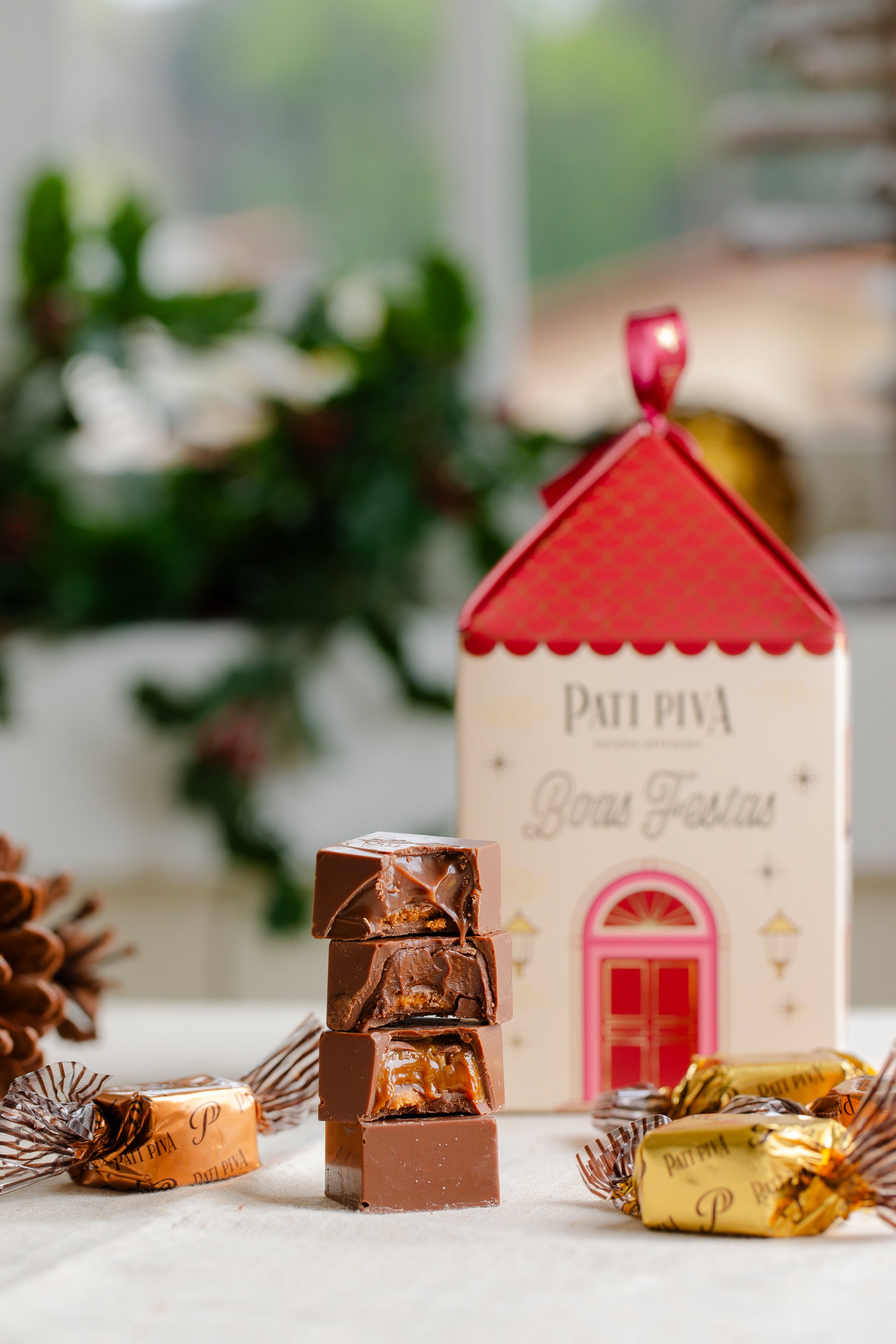 Uma charmosa caixinha em formato de casinha, recheada com 12 irresistíveis Bruxinhas — nossos clássicos bombons com muito sabor e personalidade. Cada unidade traz um recheio especial para encantar: brigadeiro cremoso, Pivatella e doce de leite.
