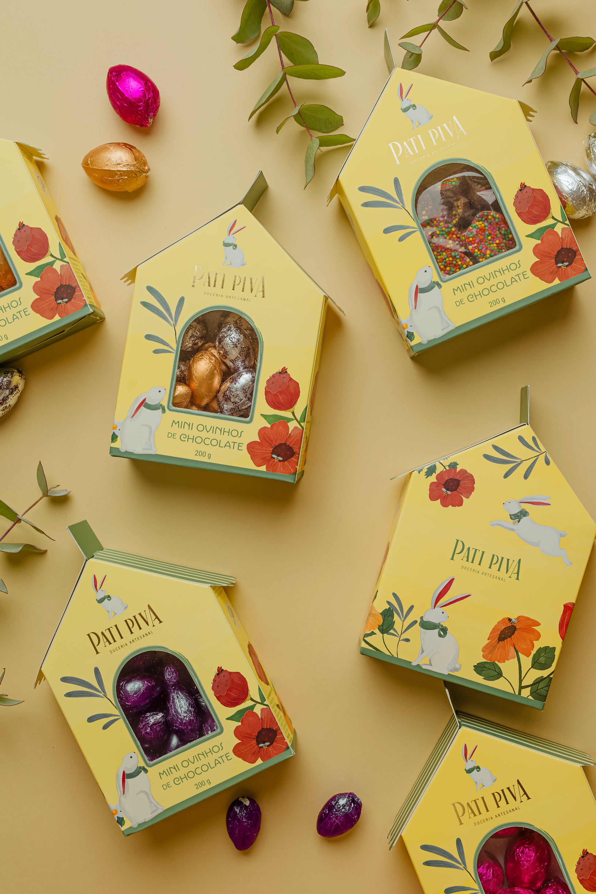 Em uma linda embalagem em formato de casinha, especialmente decorada para a data, ela traz mini ovinhos de chocolate ao leite cobertos com dragês de açúcar coloridos, que adicionam crocância e um toque alegre a cada mordida.