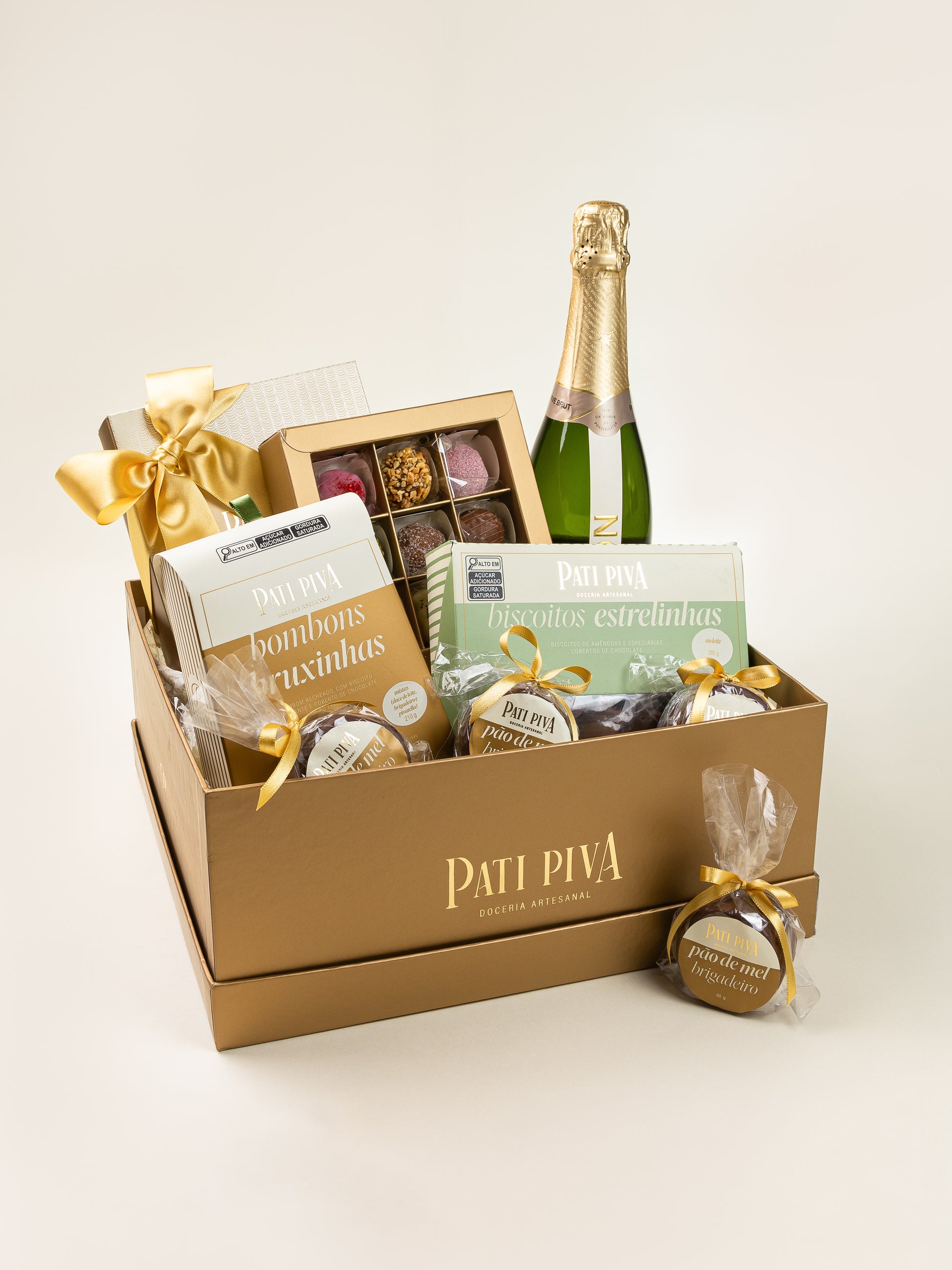 O espumante Chandon Réserve Brut 750ml traz frescor e elegância para brindar a chegada de um novo ciclo, harmonizando perfeitamente com a doçura equilibrada dos docinhos, trufas e biscoitos Pati Piva. Inclui também irresistíveis pães de mel artesanais e nossas famosas Bruxinhas mistas.