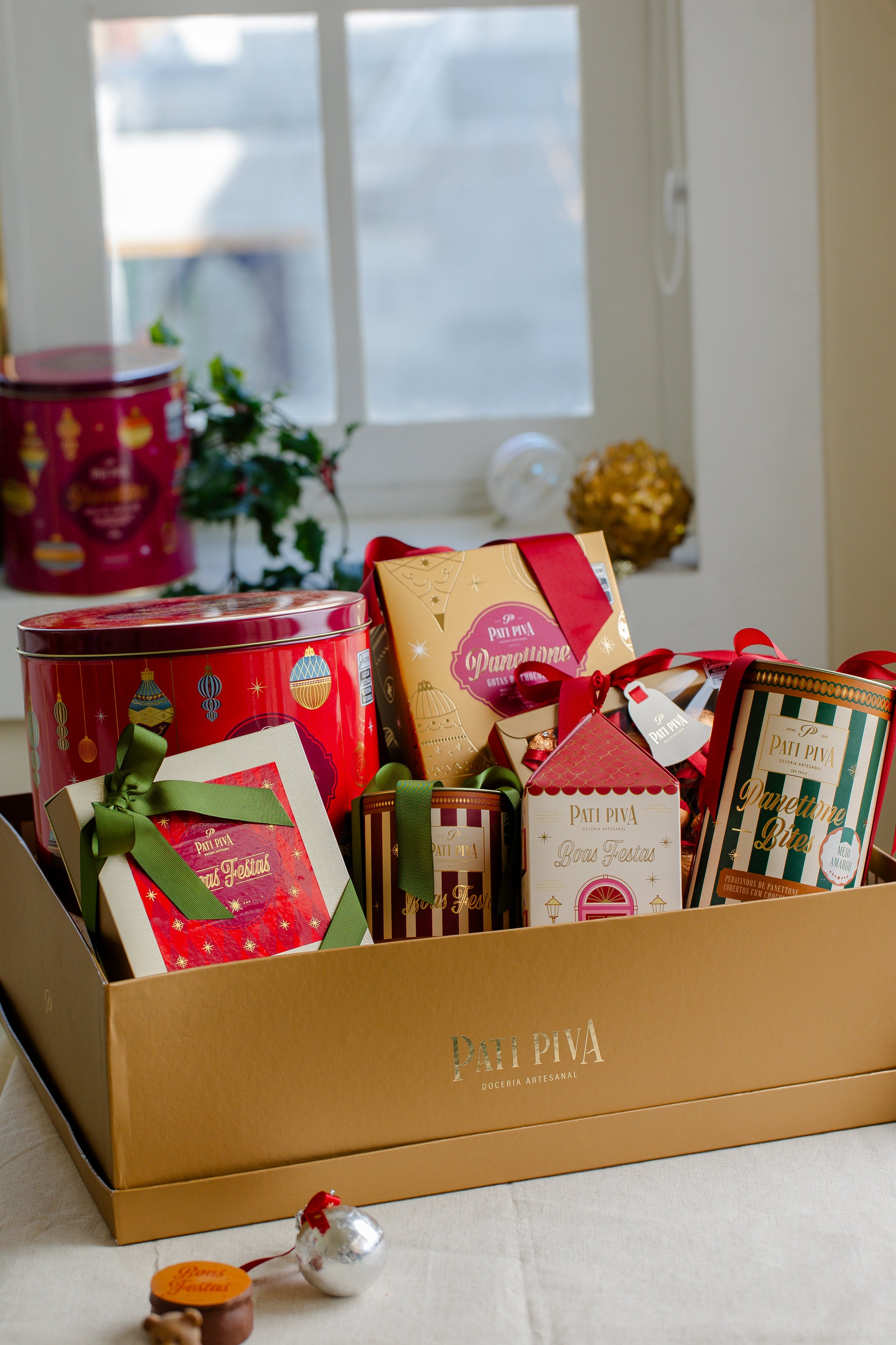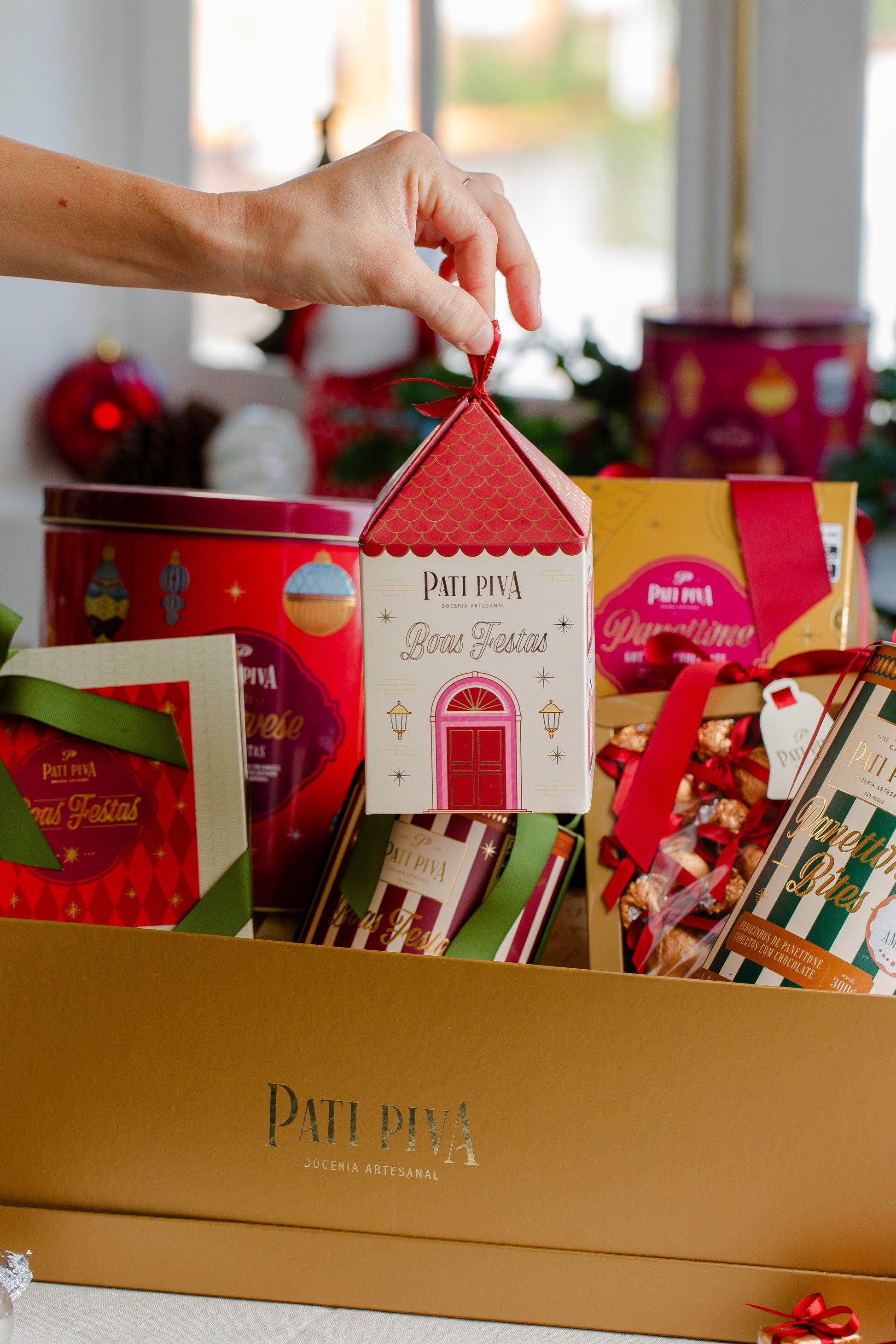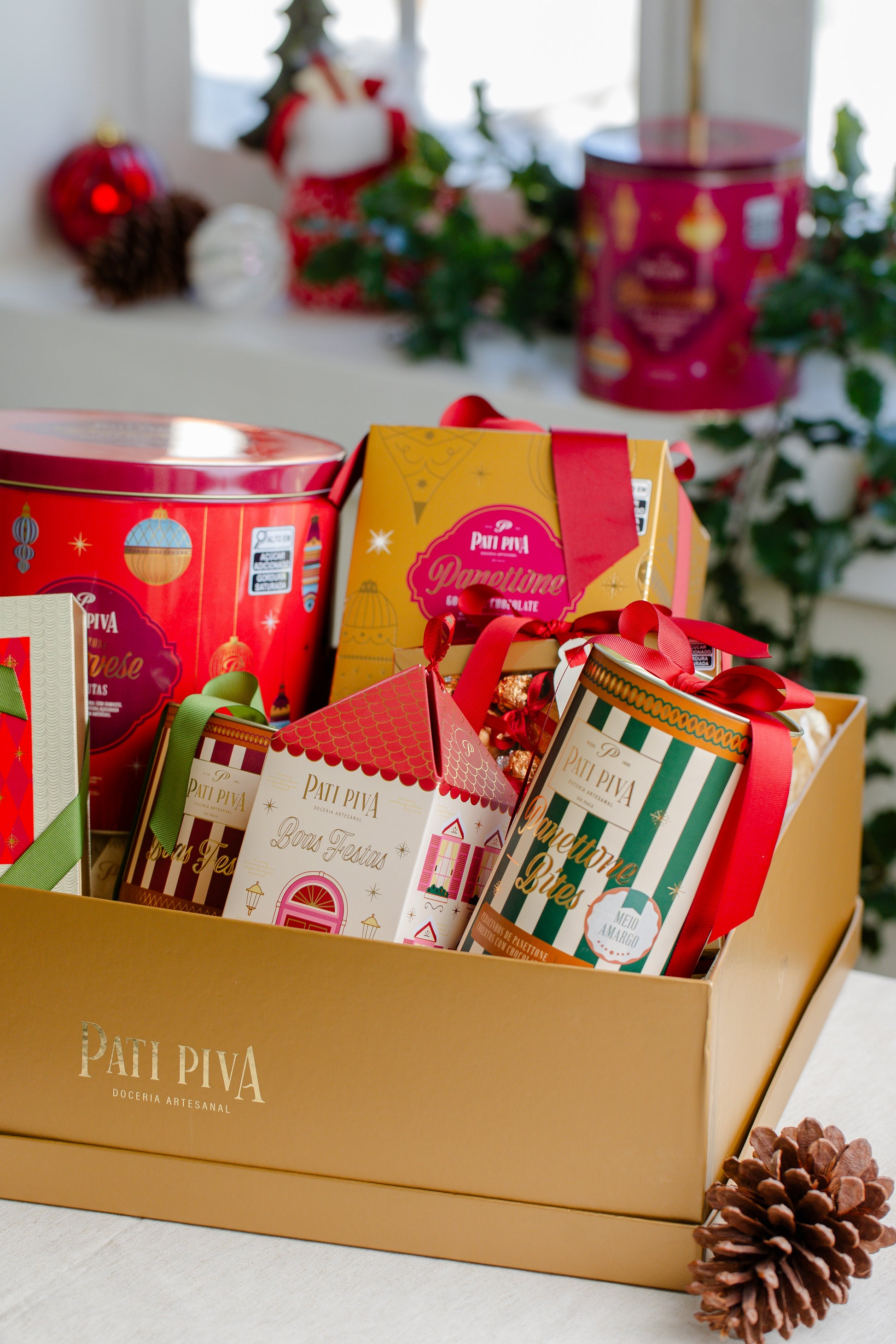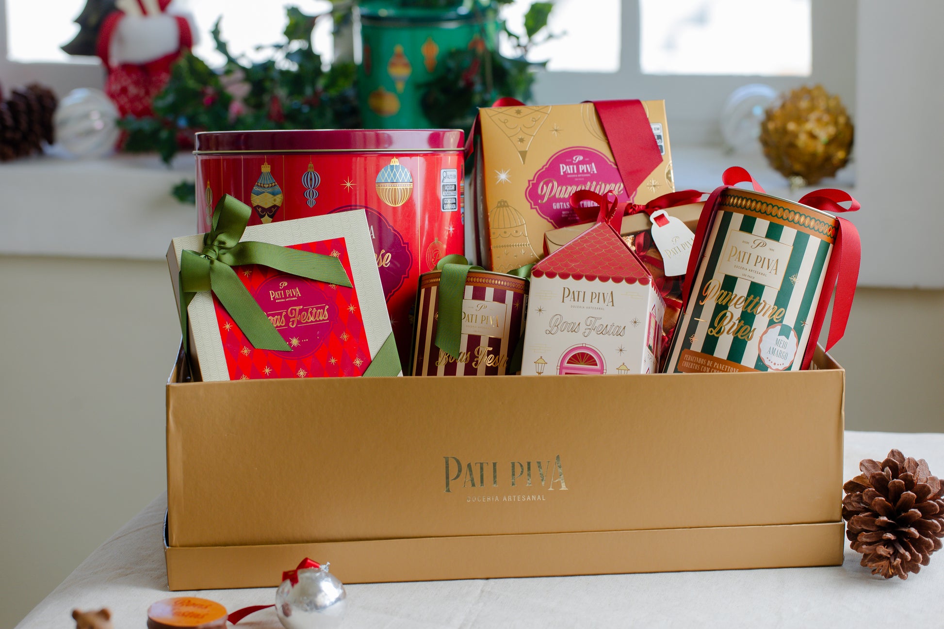 A Cesta Natalina GG reúne os maiores sucessos da Pati Piva em uma composição imponente e sofisticada. Ideal para celebrar, presentear e encantar, esta seleção traz produtos artesanais repletos de sabor e tradição natalina.