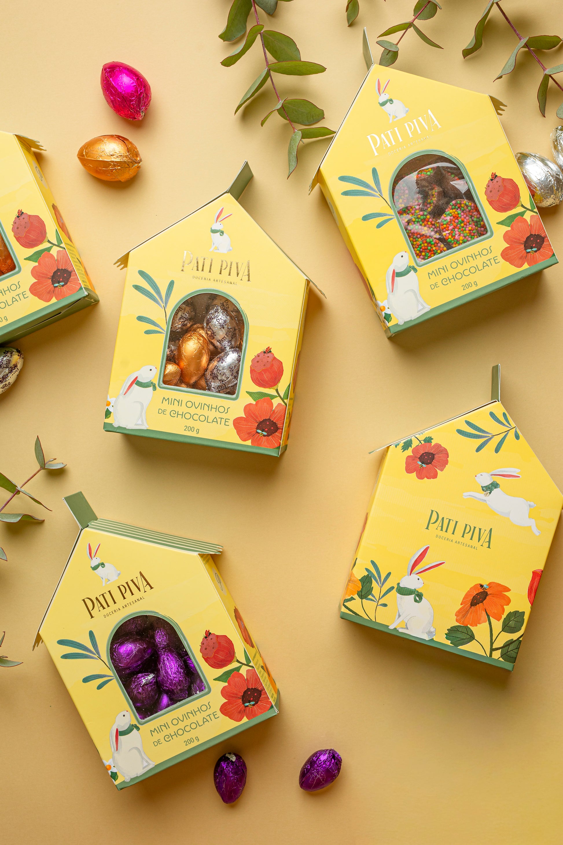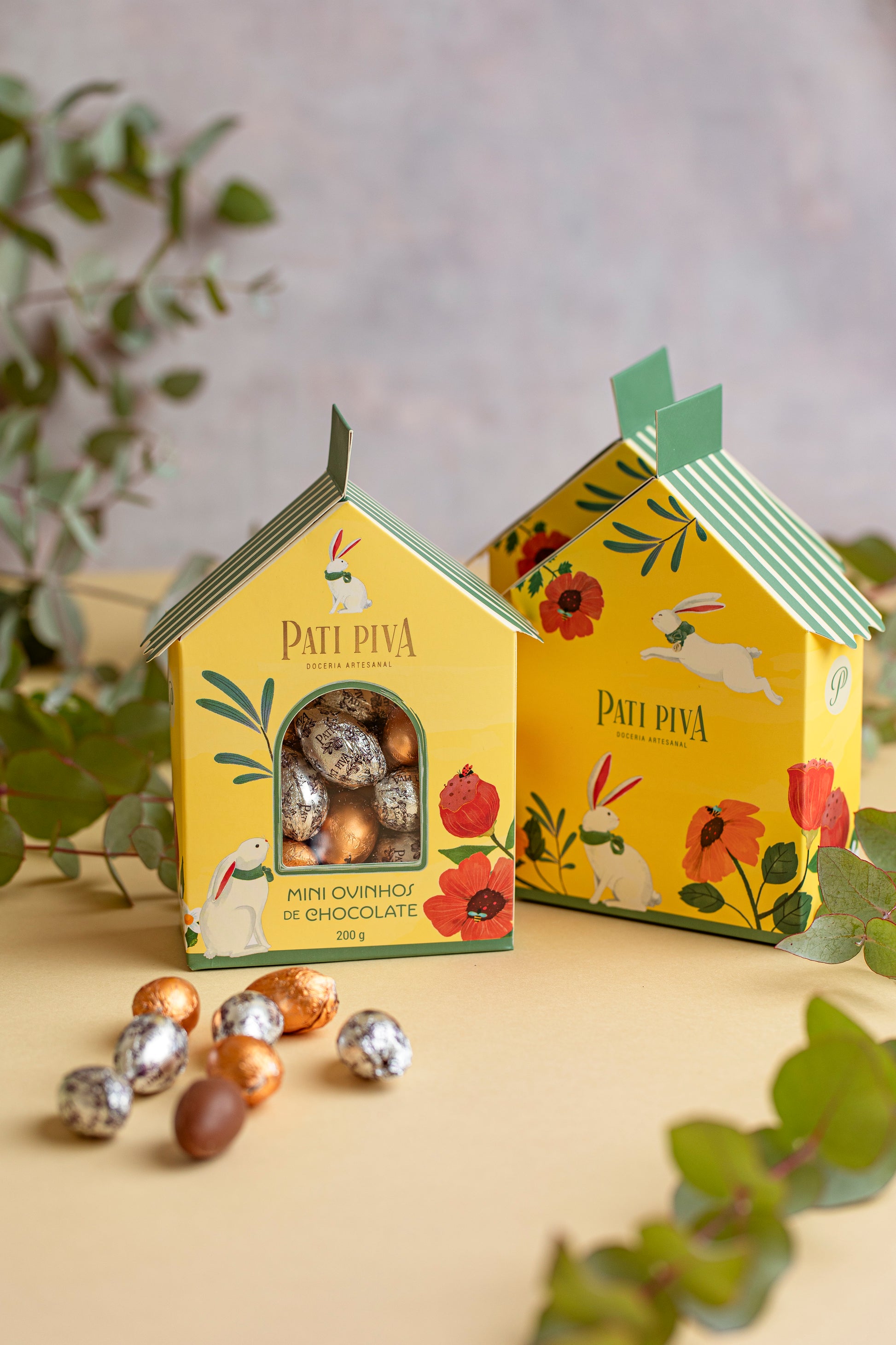 O Combo de Páscoa com 3 Casinhas com Ovinhos reúne três versões encantadoras de uma das criações mais delicadas da Pati Piva, combinando apresentação charmosa e chocolates artesanais irresistíveis.