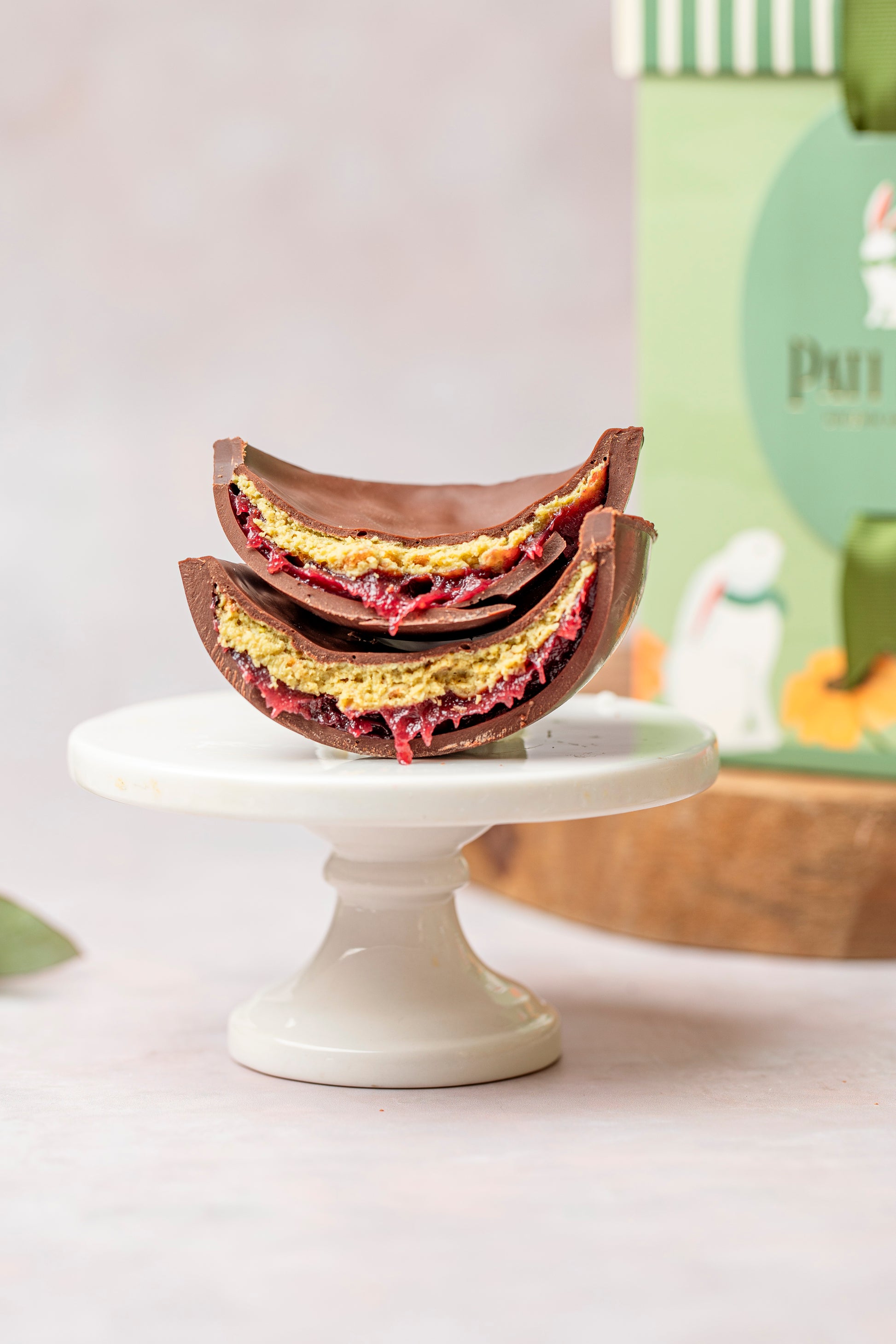Ovo meio amargo com framboesa e pistache P