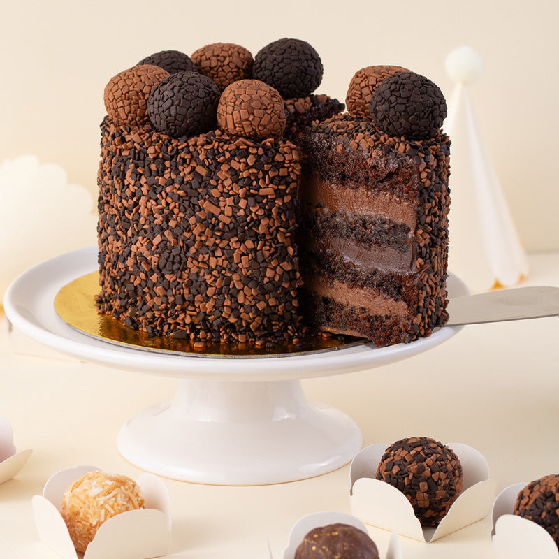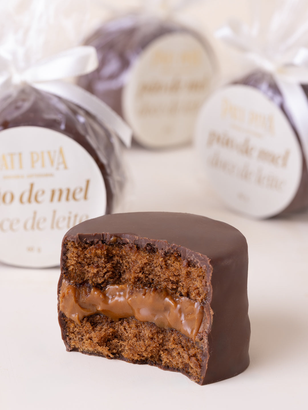 Um delicioso clássico da Pati Piva: Bolo de pão de mel recheado de um cremoso doce de leite argentino e coberto com chocolate ao leite.